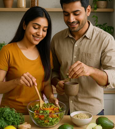 We believe food is medicine. Our root-cause approach combines science with the richness of Indian food culture—empowering your body, mind, and routine for long-term health and vitality.